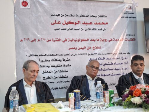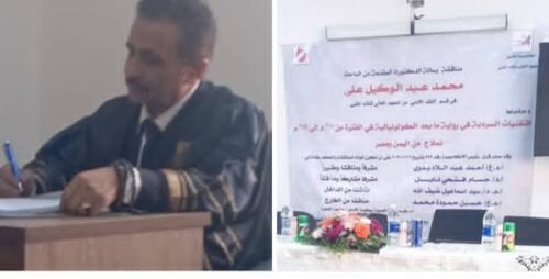 عبد الرحمن بشر : رئيس التحرير : سنوات من الكد والجد والعمل المتواصل ليل نهار قضاها الباحث والروائي والأديب والقاص الدكتور محمد عبد الوكيل علي جازم ليحصد بعدها وبكل كفاءاة واقتدار شهادة الدكتورة مع مرتبة الشرف الأولى عن رسالته التي ناقشها أمس الأول في اكاديمية الفنون بالقاهرة على رسالته الموسومة: “التقنيات السردية في رواية ما بعد الكولونيالية ما بين 2010 م الى 2019م – نماذج من اليمن ومصر ….