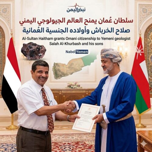 عبد الرحمن بشر : رئيس التحرير : منحت سلطنة عُمان الجنسية للدكتور “صلاح عبد الواسع الخرباش” تقديراً لمسيرته العلمية وإسهاماته في علوم الأرض.