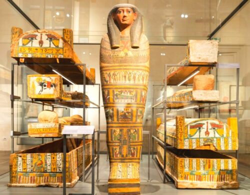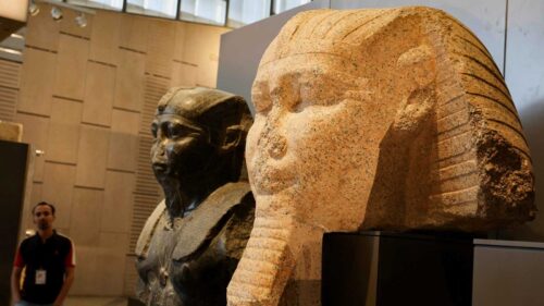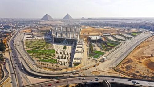 ويتمتع المتحف المصري الكبير بإطلالة بانورامية على هضبة اهرامات الجيزة ويضم آلاف القطع الأثرية التي يعود تاريخها الى اكثر من 5000 عام من العصور القديمة وبعدد يتجاوز مائة ألف قطعة تاريخية أثرية نادرة .